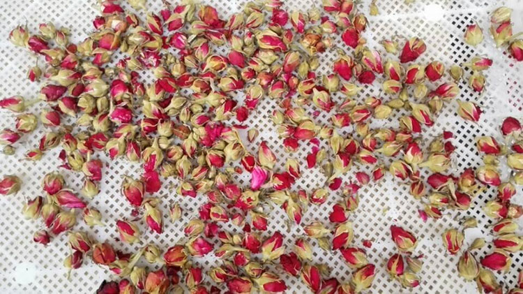 烘干前的準(zhǔn)備是:如果花蕾是在雨后采摘,需要將其表面的水晾干后加工,如果是晴天采摘直接加工即可。首先將花蕾放在烘干盤上,還需要挑出已經(jīng)開放的花朵,因?yàn)橐呀?jīng)開發(fā)的花朵所含的營養(yǎng)成分較少,且花瓣容易脫落。